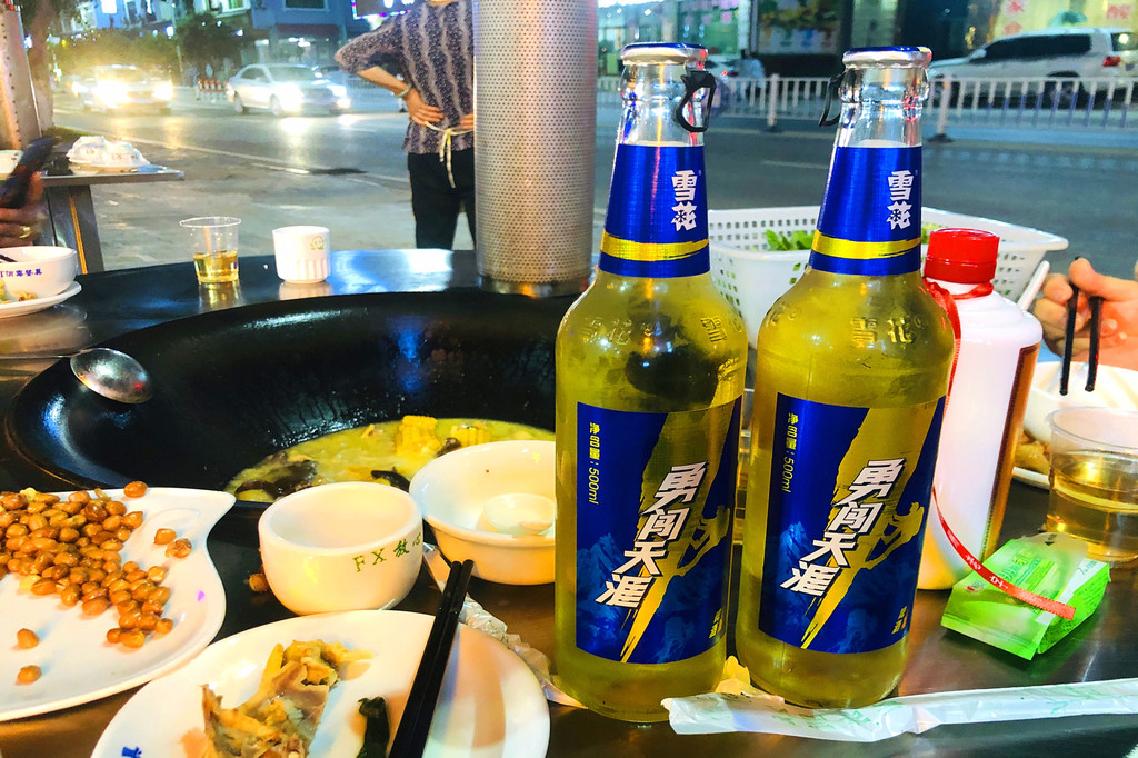 疫情还是对旅游餐饮造成了影响,走进老凯俚店内,宽大的店堂里没几桌人,先点酸汤底,我们吃不了太辣,要了轻辣,不过后来发现贵州的辣比川湘辣的程度要低了不少,伙计问我要什么鱼,我问他推荐我什么鱼,回答当然是尖嘴鱼,去鱼缸亲挑,一看原来尖嘴鱼就是鲟鱼,这酸味,真是智者见智 仁者见仁了,汤底端上来我们闻到的是一股馊味,有点不习惯,只能入乡随俗,其实酸鱼汤和巴蜀地区酸菜鱼的做法大同小异,除了酸汤鱼的餐馆一般都有自己的酿汤秘笈外,只要是鱼好、汤好、料好,味道自然就好,贵州茅台酒现在火爆的不得了,来茅台故乡当然想喝,但现在一般平民百姓可喝不起,我们买了据说是同样产自茅台酒产地的一款酱香型白酒,这酒有点茅台酒的味道,也只能这样自娱自乐了,不过没有想到的是贵州出产的杨梅汁原汁原味,非常好吃,来贵州的第一餐,不错!