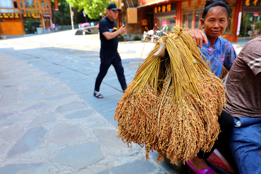 结束了晨拍,回到客栈稍作整理后出门吃早餐。清晨的侗寨才是属于当地人的,主干道上或是排队的人气早餐店,或是穿着侗装的阿姨推着的早点摊,抑或是挑着担卖土产和蔬菜的老人,邻里叫唤、乡音穿城,此时是感受原生态生活的好时间。大清早的侗寨,因为营业或叫卖的都是本地人,吃喝餐饮的价位也都回落到了原有的水平,同样也吃到了只有在这里才有的许多不知名的小吃、零食。