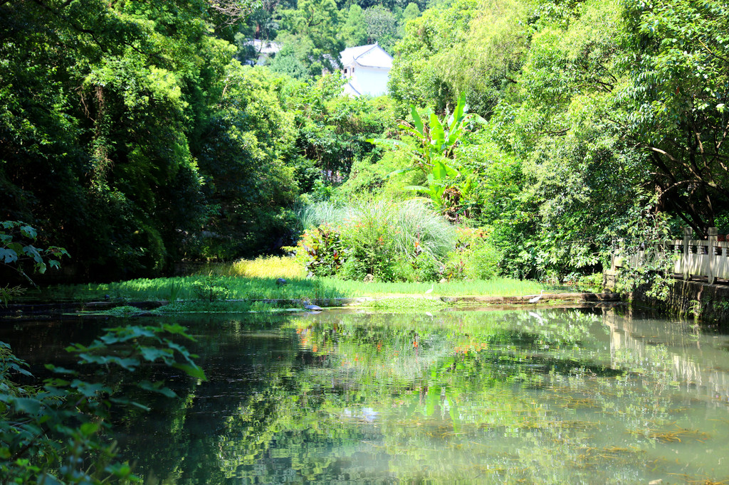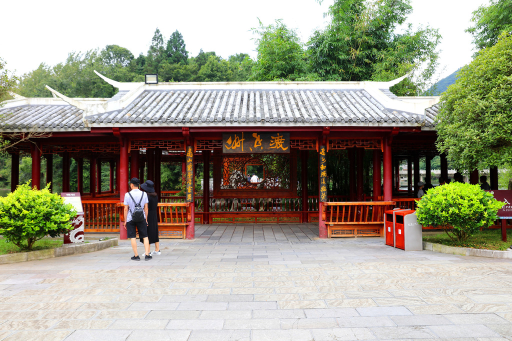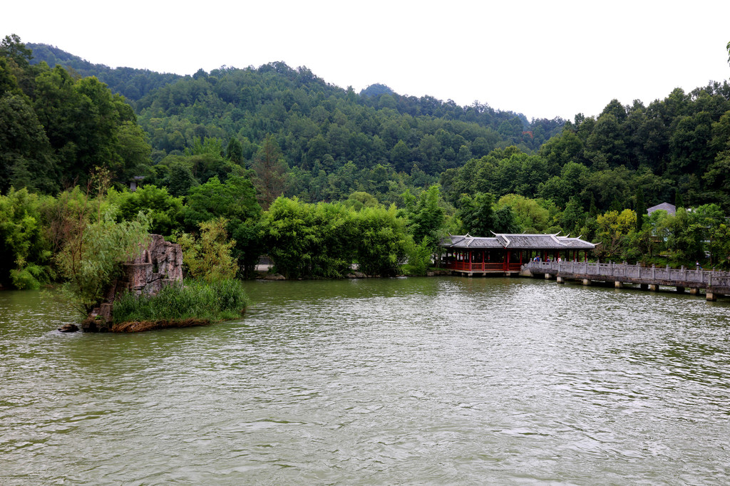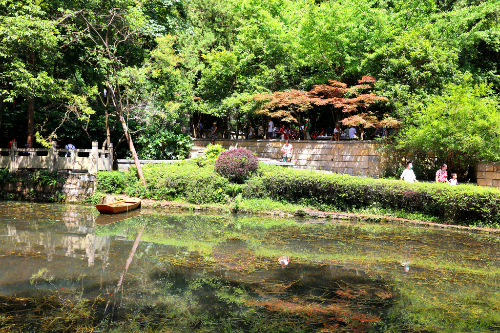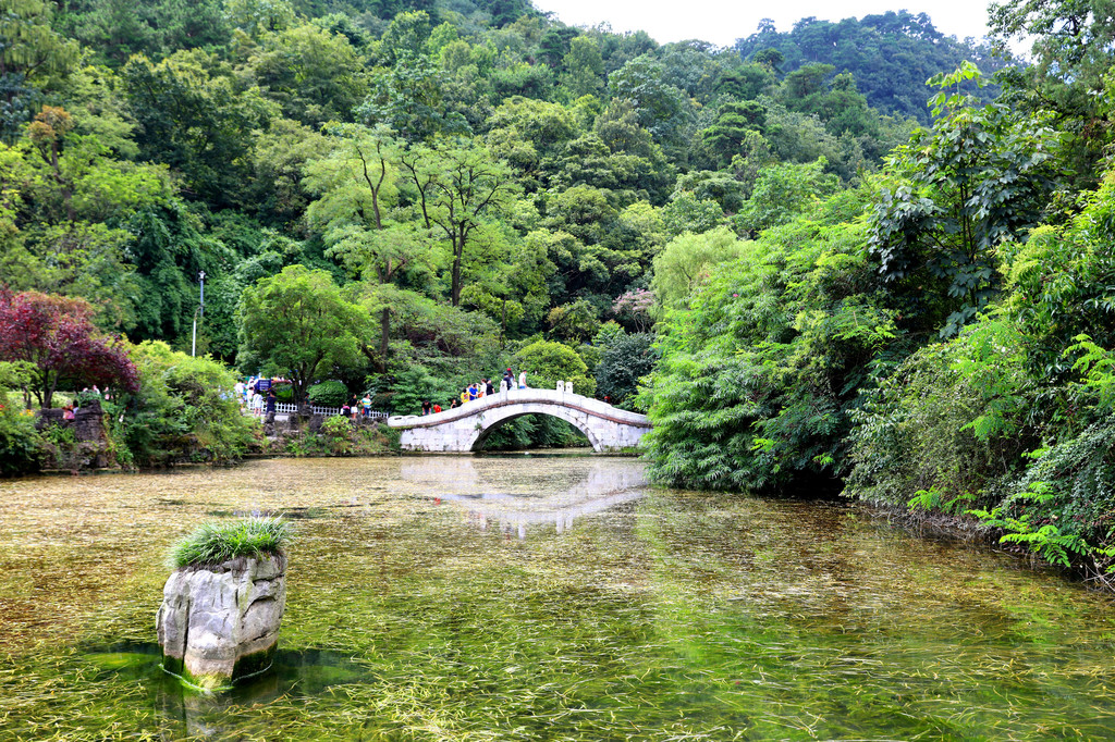 我们重回贵阳老城区,黔灵山公园周边马路堵的水泄不通,我们的车只能慢慢往公园方向移动,好不容易来到公园门口,停车又是一件大难事,花了足足半个多小时总算停好了车,不过留给我们逛黔灵山公园的时间也不多了。今天贵阳又是一个烈日炎炎的高温天,黔灵山公园大门口挤满了游客,说好的分时段预约入园也没有了,今天已是8月2日,贵州景区免门票政策已结束,现在改为门票半价优惠,这黔灵山公园门票全价才五元,真是良心价,买好门票入园,公园里游客实在是太多了,又挤又热,好在往公园深处稍走一段,风景开始一路伴随群山环绕,四周树木苍翠,河水淳淳,满眼的绿色令人心旷神怡,刚才的暑意也消退了,可惜我们不敢再往里面走了,因为离我们返程的航班时间越来越近了,只能折返而回了。如果有足够的时间,黔灵山公园应该是一个很好的慢节奏去处,这里既热闹也幽静,可以随便找个地方坐下来发发呆,也可以去找山里头的猕猴们逗逗趣。