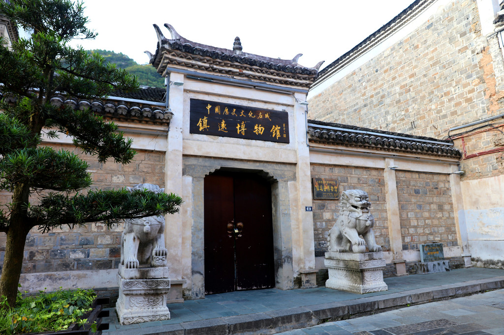从青龙洞出来我们继续游走在古城内,古街、古巷、古井、古码头、古城垣,各色的古迹散布于古城内的街巷。无需刻意找寻,无论是行走期间,抑或河边小坐,都能感受到历史在这里的凝固。而古街沿街而建错落有致的房屋,红的、绿的、蓝的通通倒影在清澈的河边上,若不是看到远处层层叠叠的大山,还以为自己来到了江南水乡。不同于江南古镇,镇远古镇被称为中国山地贴崖建筑文化博物馆,青砖黛瓦、飞檐翘角的明清古建、民居、巷道……在这里集聚一堂。尤其是舞阳河北岸曾经坐落的各种深宅大院,分布在高低起伏、错落有致的古巷道中,这些古民居并非照搬中原四合院,而是因地制宜在山上改造,运用了吊脚楼和回廊,建成这里独有的山庄式院落,既有江南庭院的影子,也有山地建筑的布局,而且这里的建筑还有一个鲜明特征叫做“歪门邪道”,在镇远古城,往往宅院的大门并非正对着巷道而是斜对着街道,大门不和巷道垂直或者平行,大厅也绝对不正对小巷的这种建筑风格,主要是因为这里曾经多商贾居住的原因,商人讲究风水,财不露白,门不对巷。