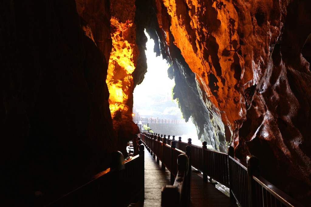 龙宫景区是典型的喀斯特地貌景观,主要是溶洞景观为主,但是又了集中明河、暗河、瀑布等景观,而溶洞又有水洞(一进龙宫、二进龙宫)、旱洞虎穴洞等,还是挺有特色的。龙宫景区游览距离其实也是蛮长的,抓紧时间起码也需三个小时,这样的话景区内的观光电梯建议还是乘一下,上下三十元,否则从下面爬到上面天池乘船处费时又费力,而周边又没啥景色。