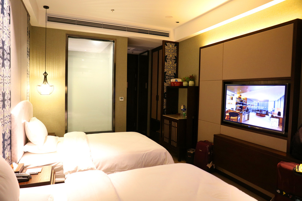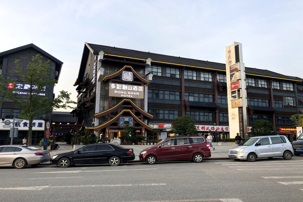 7月24日我们乘坐的航班抵达贵阳是下午六点多,考虑到第二天一早我们就要离开贵阳前往安顺,为出行方便我们准备住机场附近,结果搜了一下发现离贵阳龙洞堡机场不远处有一个多彩贵州城附近有许多宾馆,我们随意就订了贵阳多彩融山酒店,我们提好租的车开车到酒店大约五分钟车程,酒店门前马路二旁有免费停车位,找空位可随意停车,也可停在酒店旁的多彩贵州城地下停车场,疫情期间停车免费,入住时前台全程服务非常好,住店客人需出示贵州健康绿码、并扫描显示行程轨迹,酒店房间是现代化智能房型,卫生方面干净清爽,房间内智能电动窗帘,洗浴间的是手控触摸屏镜面灯光,酒店后面是多彩贵州城,多彩贵州城是一个集吃,住、文娱的商业综合体,生活需求很便利,相比于酒店二百多的房价,性价比相当高。