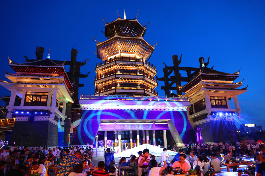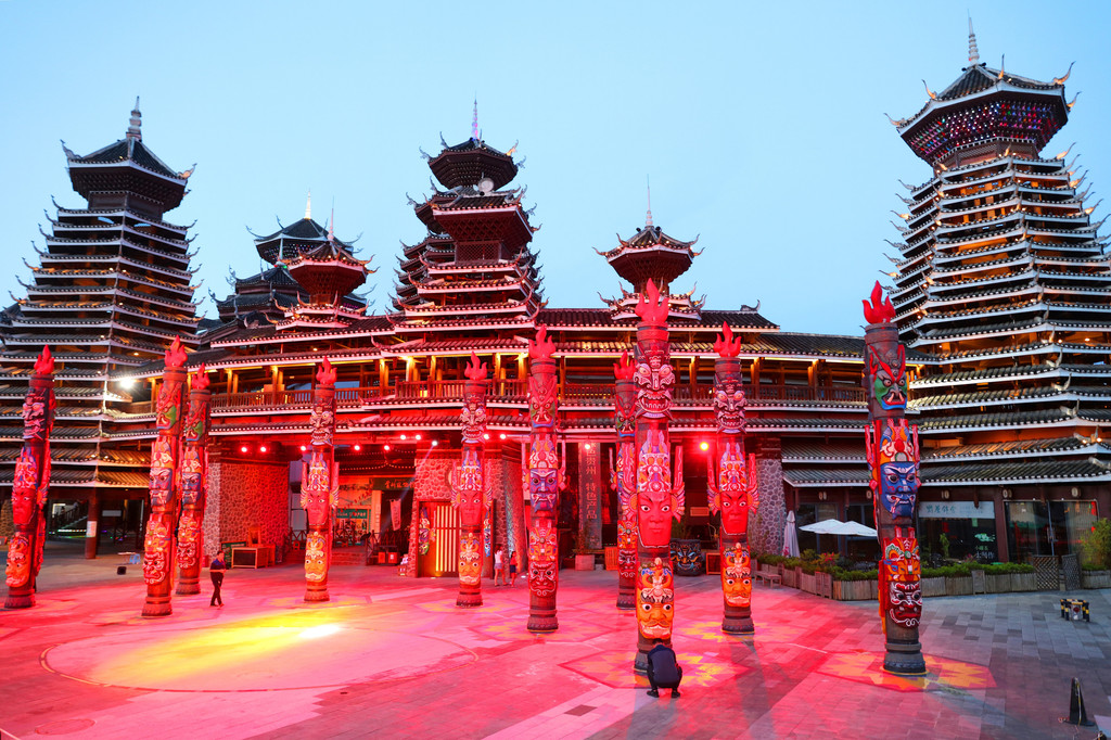多彩贵州城,是一个集吃、住、文娱一体的综合体,这里有贵州独特的大型民族风格建筑群,建筑物以侗寨风格鼓楼为主,辅以苗寨建筑,非常壮观和雄伟,这里有大量的民族特色的店铺,展示了多元的文化。