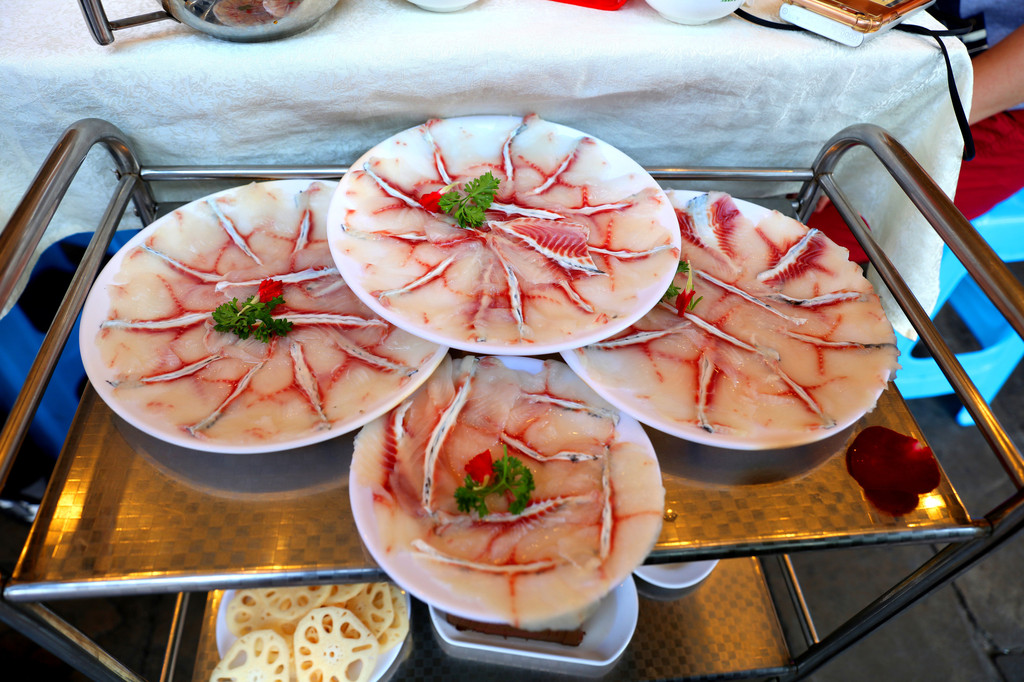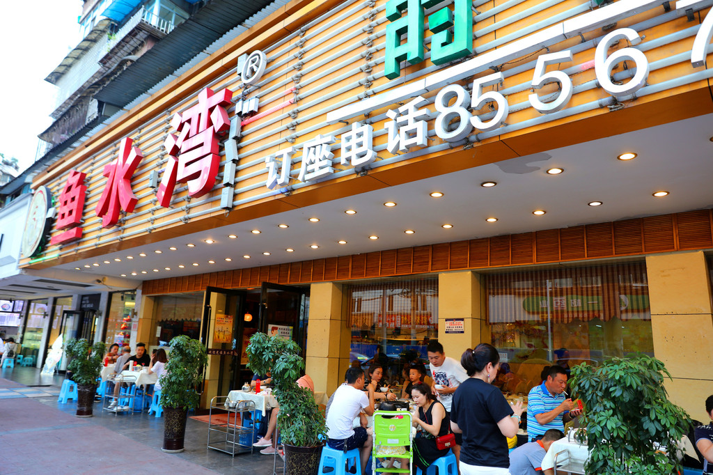 晚上的贵阳比白天还热闹,到处是熙熙攘攘的车流、鳞次栉比的店铺,充满热气腾腾的人间烟火气,也反应了一个城市的活力,夜晚的青云路上帐篷一字排开,闪烁的霓虹灯,锅碗瓢盆的碰撞声、烧烤的滋滋声、喝酒划拳的欢笑声、裹挟着油烟味.........最著名的周记留一手烤鱼半条街都摆上了他们家的桌子,我们到的时候二百多桌已坐满需等号,服务员都忙来忙去穿梭桌间根本不理会你,一看这阵势,只能另选人家了,看到青云路兴关路上有家渔水湾美食广场,生意也好的不得了,正好临街空出桌位,赶紧入坐,这家是吃鲜鱼火锅的,招牌是鲟鱼和参鱼,参鱼没吃过,决定点参鱼,到鱼缸现点,一看这参鱼原来就是我们所说的黑鱼,不过这家的店确有特色,活鱼切成薄片,又薄造型又漂亮,原汁原味的鱼汤作火锅底料,不加一点辣,非常对我们的胃口,参鱼肉紧味鲜Q弹,只需在锅中涮几下,参鱼的鲜美味充满口中,再加上几样配菜,吃的十分爽、反正依我们的口味,远胜酸汤鱼。吃完参鱼火锅,继续在青云路夜市街溜达,美食的诱惑力实在太厉害,又去撸了新疆羊肉串、喝了红乌苏啤酒,鳞次栉比的美食店实在太多,更多撩动味蕾的美食还等着 ,可惜我们的胃只有一个,再也装不下东西了,只能流着口水看着美食离开青云路夜市了。