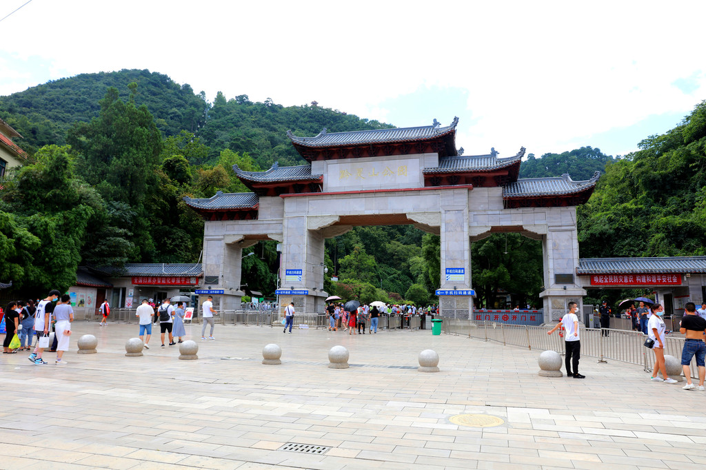 从镇远古城前往梵净山大概140多公里,开车二个小时,我们来到了江口县方向的梵净山脚下,在景区大门外先停好车,只见四周人流如织,游客服务中心的广播一遍遍地在喊话,梵净山景区预约门票预约已满,没预约到门票的游客请回。2018年梵净山被列入世界自然遗产名录,而世界上最广为人知的旅行杂志之一《国家地理》发布19年旅行清单,全世界23个地方上榜,其中就有一个来自中国贵州的梵净山,这一系列的媒体推波助澜让梵净山这个原来养在深闺无人识的地方变成了贵州乃至全国名噪一时的网红打卡圣地,当下来贵州旅游最难的是搞到梵净山门票,因为7月31日前是贵州全省旅游景点门票免费活动的最后一天,提前一周早上八点开始的预约基本上是秒杀。我们预约到的门票入场时间是中午十二点场的,此刻才十点多,想碰碰运气看能否提前入内,来到排着长长队伍的景区大门入口处,一问因为景区里面的道路出现情况,道路不通畅,十点钟入场的游客现在还在等候中,一看这架式赶紧知趣地迎难而退,老老实实的去游客中心外一美食街吃点东西先休息一下。