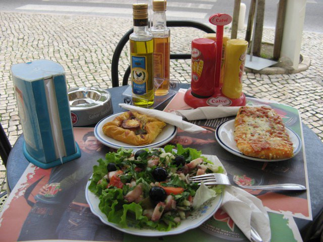 原路下山会经过Sintra National Palace 同样也是王室的住处门口的广场可以看来往的人群和偶尔开过极具特色的叮当小车坐着晒晒太阳远眺一下童话森林顺便吃了一顿葡萄牙式的午餐两个人好像是9欧还真便宜
