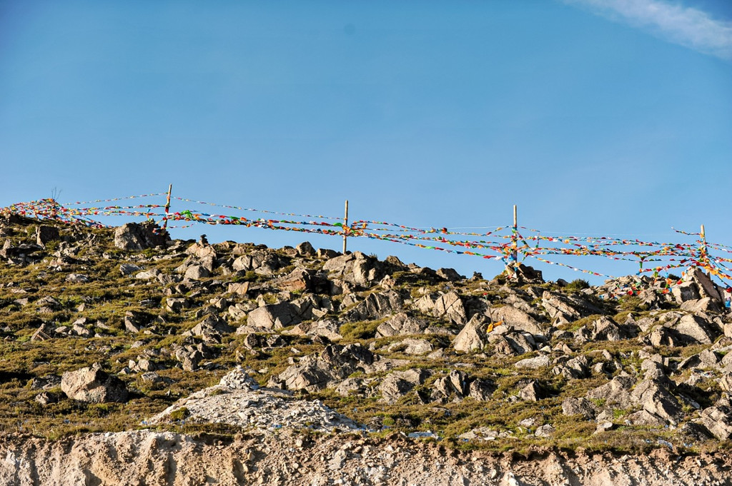 要说这片【天空之城】还有什么可烂漫的,可能就是这壮阔的格桑花,驱车前往海拔4000米的草原竟然有这一片神奇的花海,随着当地特色的经幡,与微风一起舞动,可能来过这里的人才能体会这一份心境。
