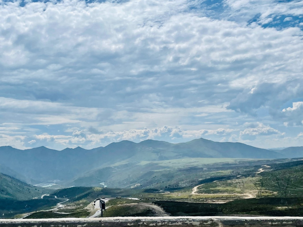 开篇就告诉过大家,我是一个「高反严重者」,我曾经在换边防证的大厅里断片晕倒。所以到达4000m的地方,高反如期而至。由大自然鬼斧神工缔造的沿途的美景,也是可以浅浅的抚慰一下内心。在卡子拉山观景台眺望,我们的目标即是遍地都是丁真的 理塘 。