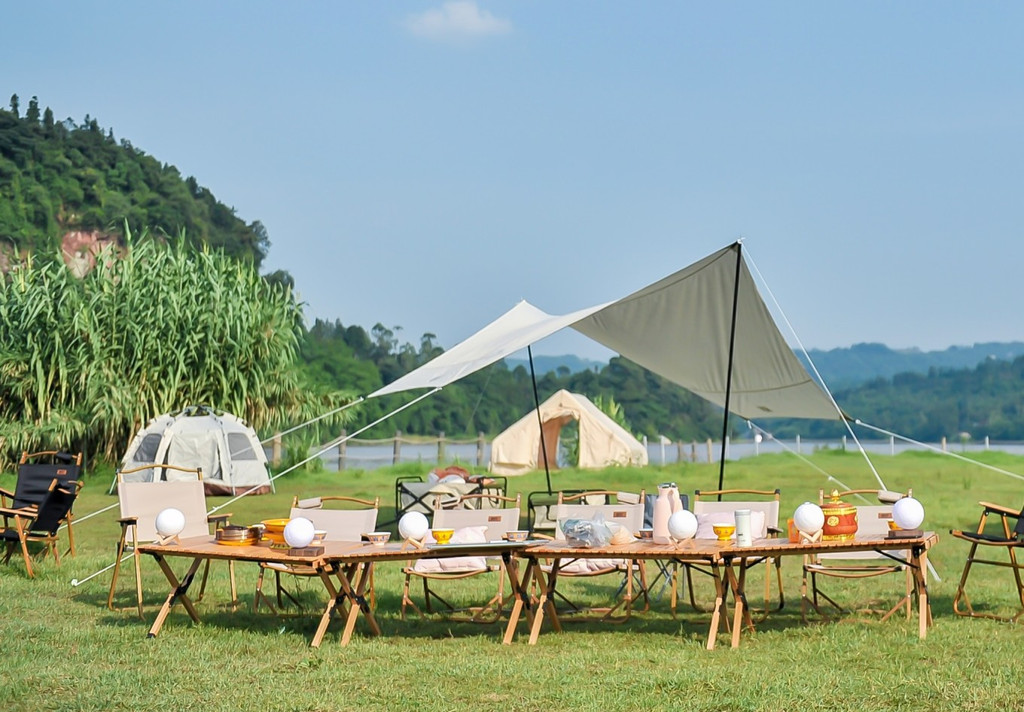 约上三五好友,一起搭建天幕,铺上蛋卷桌,扎起小帐篷⛺️,摆上美味可口的零食,感受这青山绿水的郁郁葱葱,没有风的时候,还能看到水面上清晰可见的山峦的倒影,真的特别漂亮。