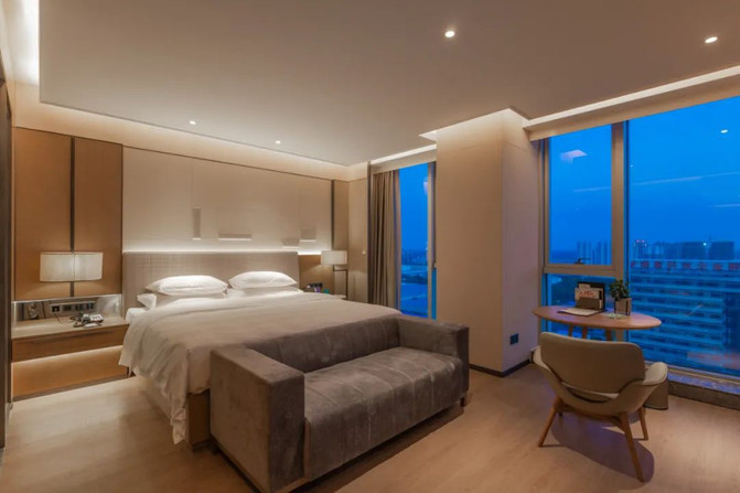 酒店客房装饰多采用定制木饰面板以及无甲醛环保涂料,给到宾客们安全的居住环境。客房里搭配专属定制床垫、和全套斯得福纺织用品,带给宾客们安心舒适的睡眠体验。