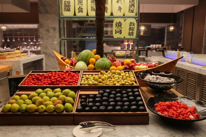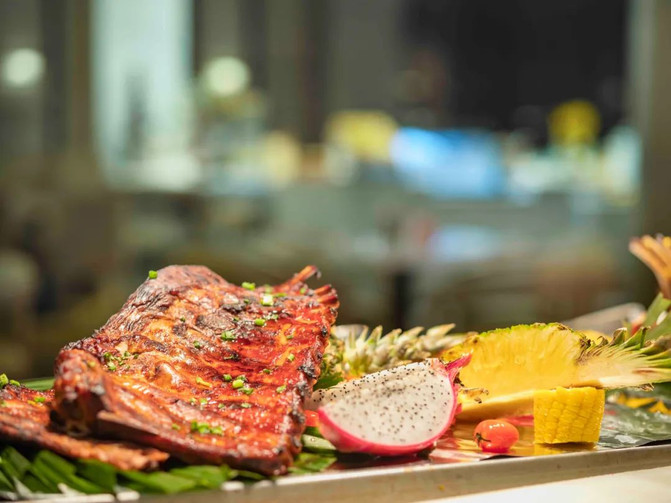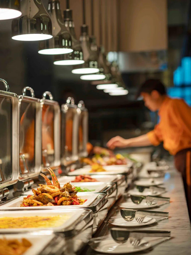 餐厅在每个周末晚上都会推出品类丰富的自助晚餐。烧烤、刺身、海鲜等美味佳肴遍布各个档口;让宾客们体验到舌尖上的环球之旅,尽享风味各异的美食盛宴。