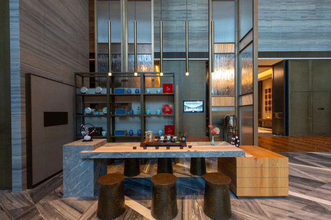 大堂吧错落有致的座位摆放和的浓郁中国风的装饰,营造出轻松舒适的环境。约上工作伙伴或者好友在这里享用纯正的茶饮,或者自己一个人独处,翻阅一本有趣的书籍,也都是不错的选择。