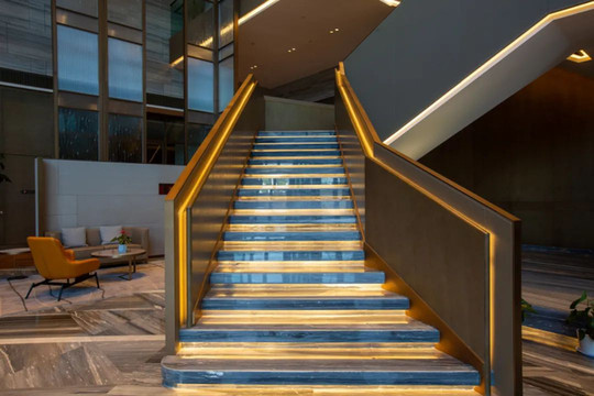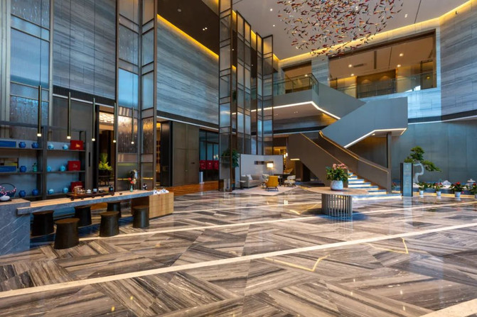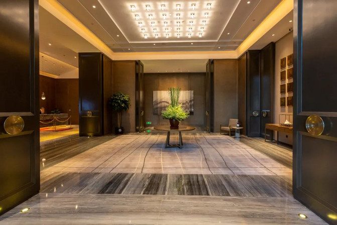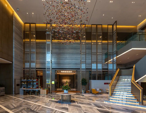 大堂设有欢迎茶台和休息区,热情的礼宾司给到宾客们专业的服务,如果是参加宴会或者上二楼用餐的宾客,可以直接从楼梯前往。