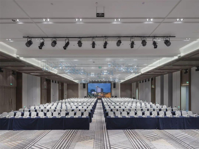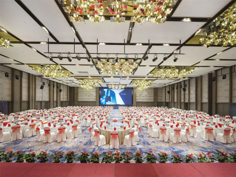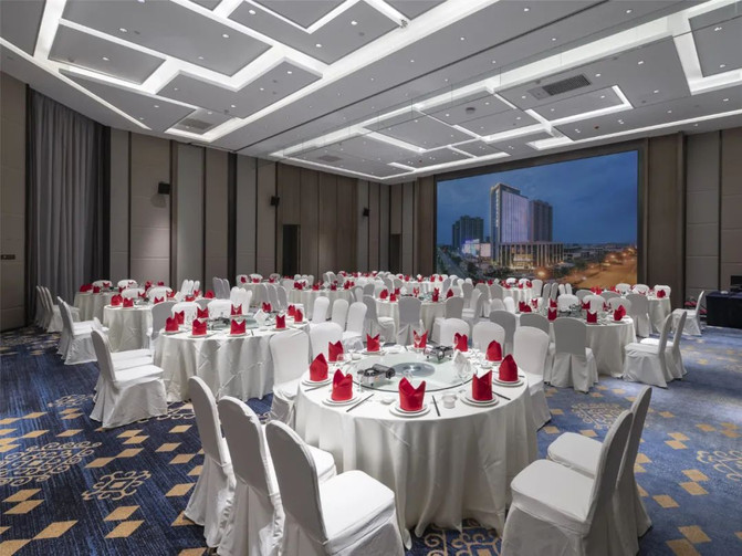 酒店拥有专业的无柱式会议场所及设施,并选用德国高端娱乐音响品牌—Meye;可同步式超大P3高清LED显示屏。解锁场地限制,满足宾客的宴会所需。