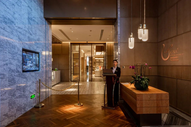 穿过大堂继续往里走,仿佛步入中国传统的私家府邸,左手边是酒店前台,宾客可在这里办理入住(退房)手续,右手边则是前往地中海咖啡厅。