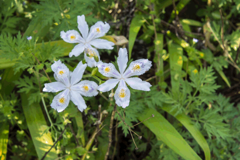 野地里,细小的黄堇串串;野豌豆青绿迷人,触须在空中卷住微风,这种古代叫做“薇”的植物,是伯夷、叔齐的主食;而灿烂一片的二月兰,被乡民称为“诸葛菜”,据说蜀丞相行军时遇到粮草不济,便采食此菜;山地灌丛中是棣棠的黄花在唱主角;淫羊霍的小白花点缀其间。