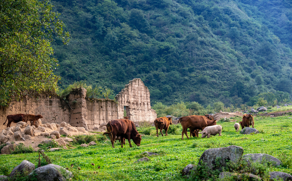 狮子沟牧场:这里曾经是诸葛亮军马放养之地。没有了高楼大厦,眼前是一片高山草地,憨态可掬的牛儿安静悠闲地低头吃草,与世无争的模样是满满的治愈系。