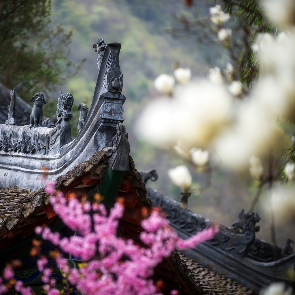 张良庙:古祠青烟绕缭,院落重重叠进,古碑落款,俱是名仕大家,春风里,花木扶苏,重瓣樱花,如雪辛夷,透过花影,古殿屋脊上檐兽们小小的凶猛,朝向时光,巨大的垂柏和七叶树,经历了几百年生命中的又一个春天,娑娑地再一次泛绿。