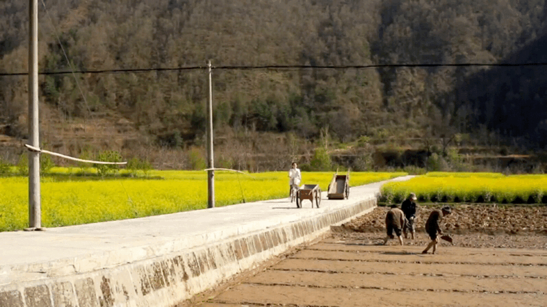 映衬着远山的新绿,和这近处的花香,一幅农忙春耕图的祥和景象浮于眼前。