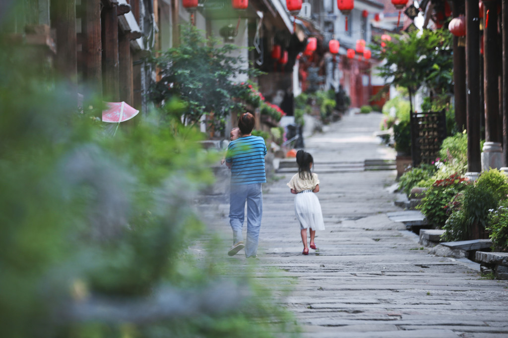 跟所有老街一样,有着两百多年历史的留坝老街,在保存了当年的轮廓的同时也输入了很多现代的元素。经过改造的民宿、食肆、特产店铺,都带着留坝原有的淳朴也有现代化的便捷,管理得有条不紊。我在留坝的旅居生活是从老街清晨的蒙蒙细雨开始的,坐在书屋靠窗的桌前,细雨霏霏从房檐流下,落在旧时的石板街,一种来自前世的错觉顿生,但留坝并非前生,更似二十多年前的故乡。泡上一壶清香的汉中绿茶,配着洋芋糍粑呷上几口,一个人等待雨歇,或等一两好友前来畅谈诗与远方,这种体验大概就是我来小城旅居最初的向往吧。时近大暑,这是一年中最热的时节,一场雨给老街增添了不少诗意,也让温度降到了秋意一般浓。当地的朋友说,这就是留坝的夏天嘛,她裹了裹自己的外套,语气里分明带着一丝自豪与炫耀。