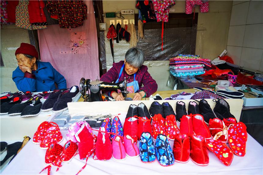 老街上遇到一家特别的小店,老奶奶正用传统的缝纫机做鞋垫,小小的摊位上,手工做的棉鞋,还有各种尺码的鞋垫,看着温暖而古朴,和老奶奶聊天,她说一口流利的四川话,开始我觉得很奇怪,朋友解释了才明白,留坝和四川广元搭界,这里人们的说话口音以及生活习惯,都和四川人一样的,他们喜欢吃辣,喜欢自己家制作腊肉。