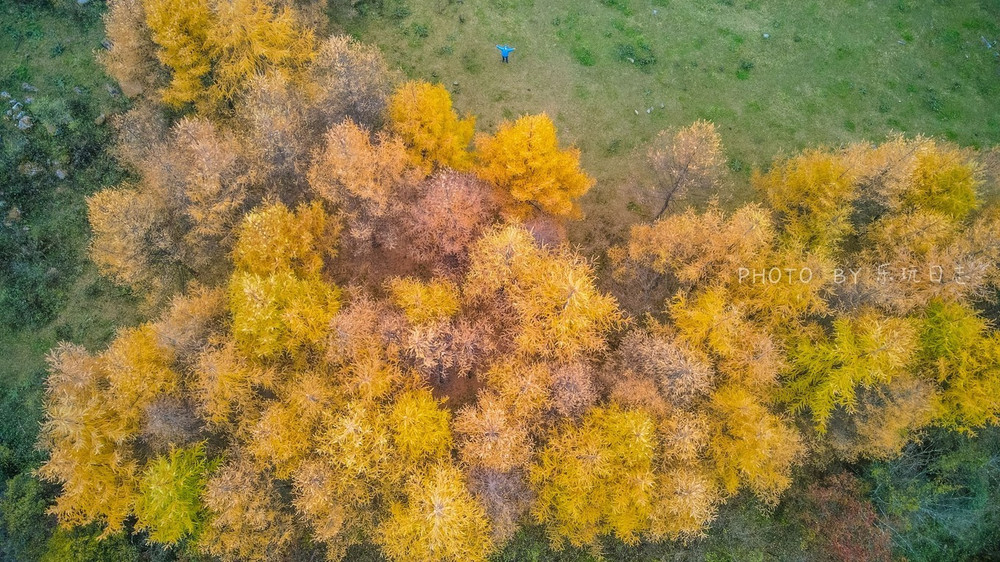 深秋,紫柏山的落叶松一片金黄,随着山势起伏,非常好看。