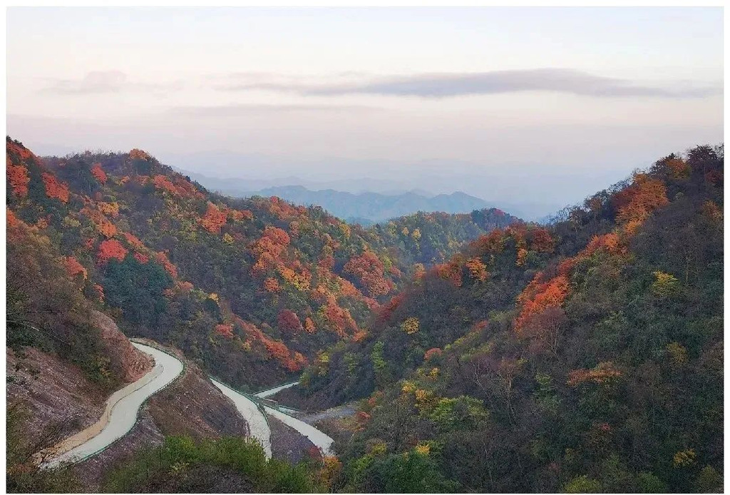 狮子沟牧场北侧不远处即是太子岭,这是留坝之旅的又一个高潮。遗憾的是我去的时间稍晚,太阳已没入西山,漫山遍野的红黄绿稍显黯淡,不过依然十分壮观。这里的红叶是一路所经景观中最为鲜艳、弥漫最为广阔的绝色。一般情况下,照片比肉眼所见更漂亮,但太子岭的风光恰好相反,因为照片只能显示局部,无法体现360度立体环绕的绚烂多彩,且,秋色足够浓郁,已然像加了饱和、开了滤镜的大片。