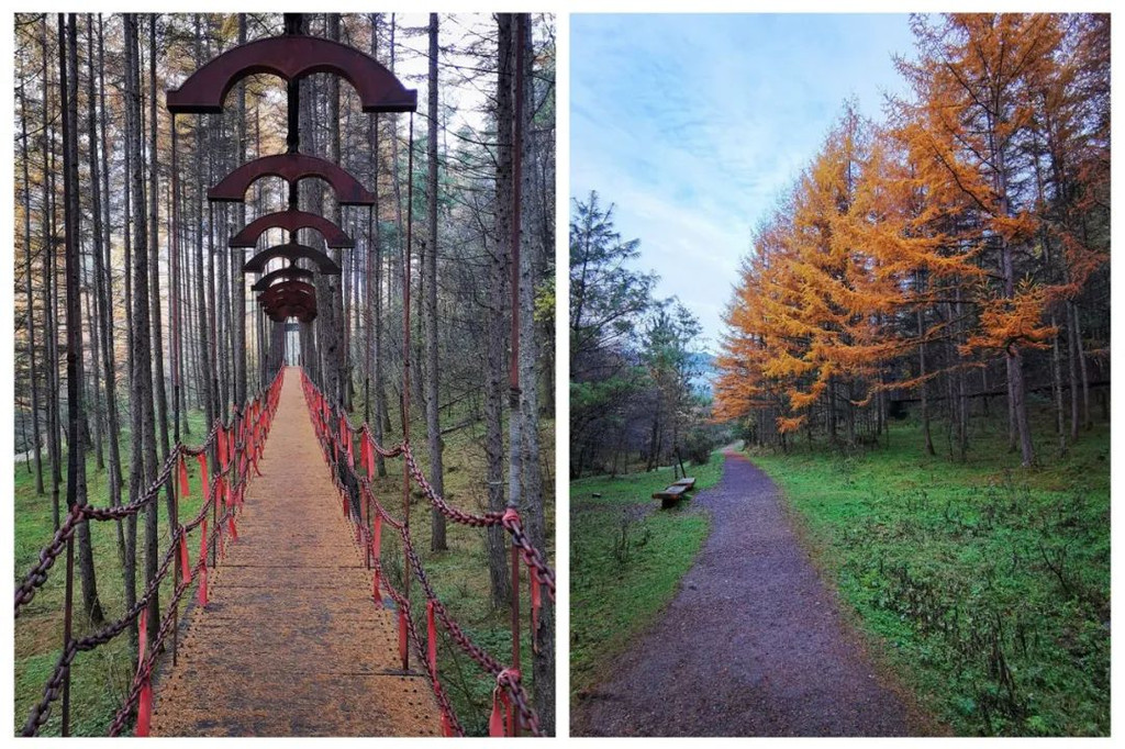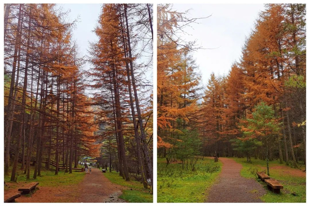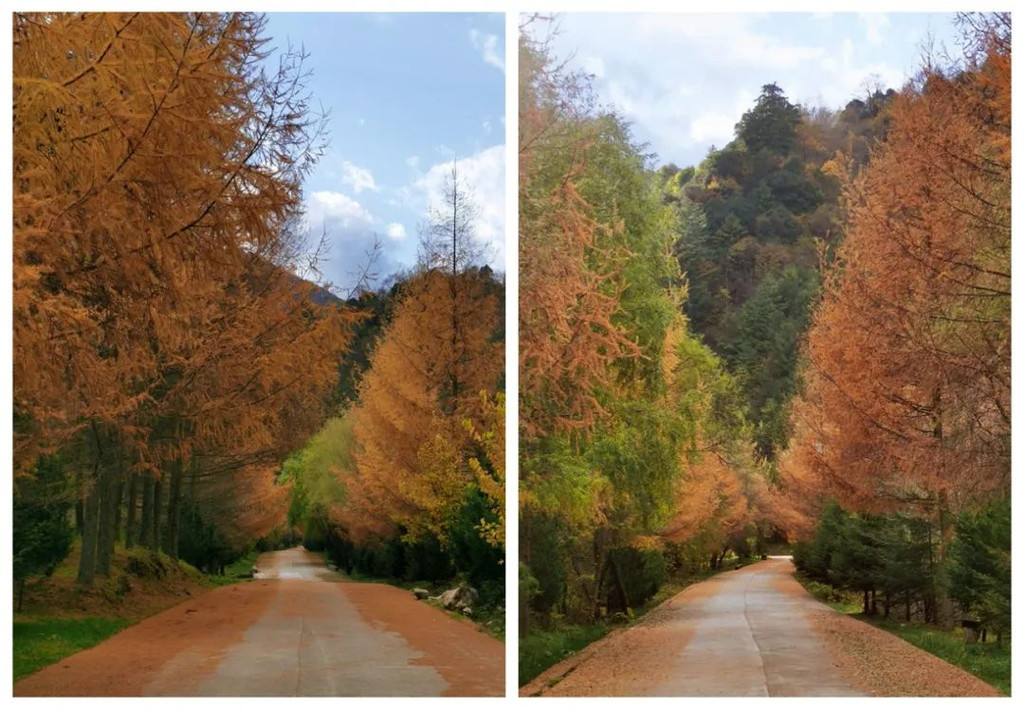 谷中有500亩12年生的落叶松林,枝叶遮天蔽日,清幽静谧,实乃情侣爱人幽会谈心享受自然的不二之选。