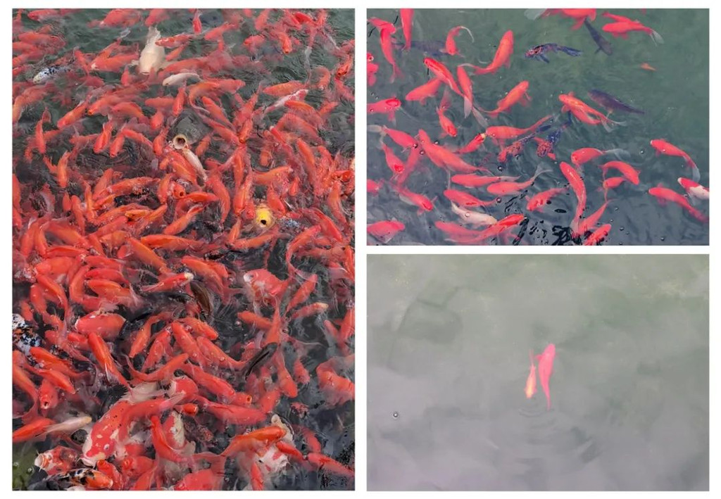 庙中还有处仿汉代石鱼的“跃来金鱼”,据说摸一摸可带来好运。