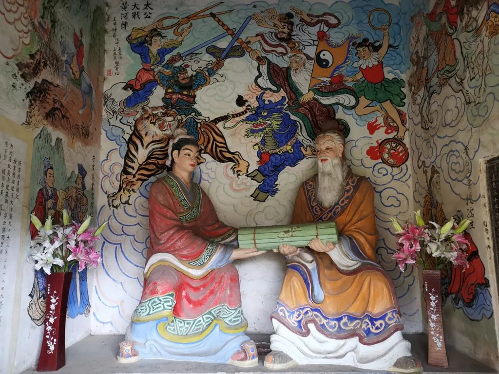 上文提到张良庙也是一处道教圣地,是道教第三洞天,因为张良与道教渊源很深。传说中张良归隐后修道成仙,其八世孙——东汉的张道陵是道教创始人,所传道教也被称为“五斗米道”;其十世孙张鲁是五斗米道第三代天师,东汉末年在汉中建立政教合一的割据政权,统治近三十年,采取宽惠政策,深受当地民众拥护,后降曹操,封阆中侯,为祭祀祖先张良,最早在紫柏山中修建了张良庙。