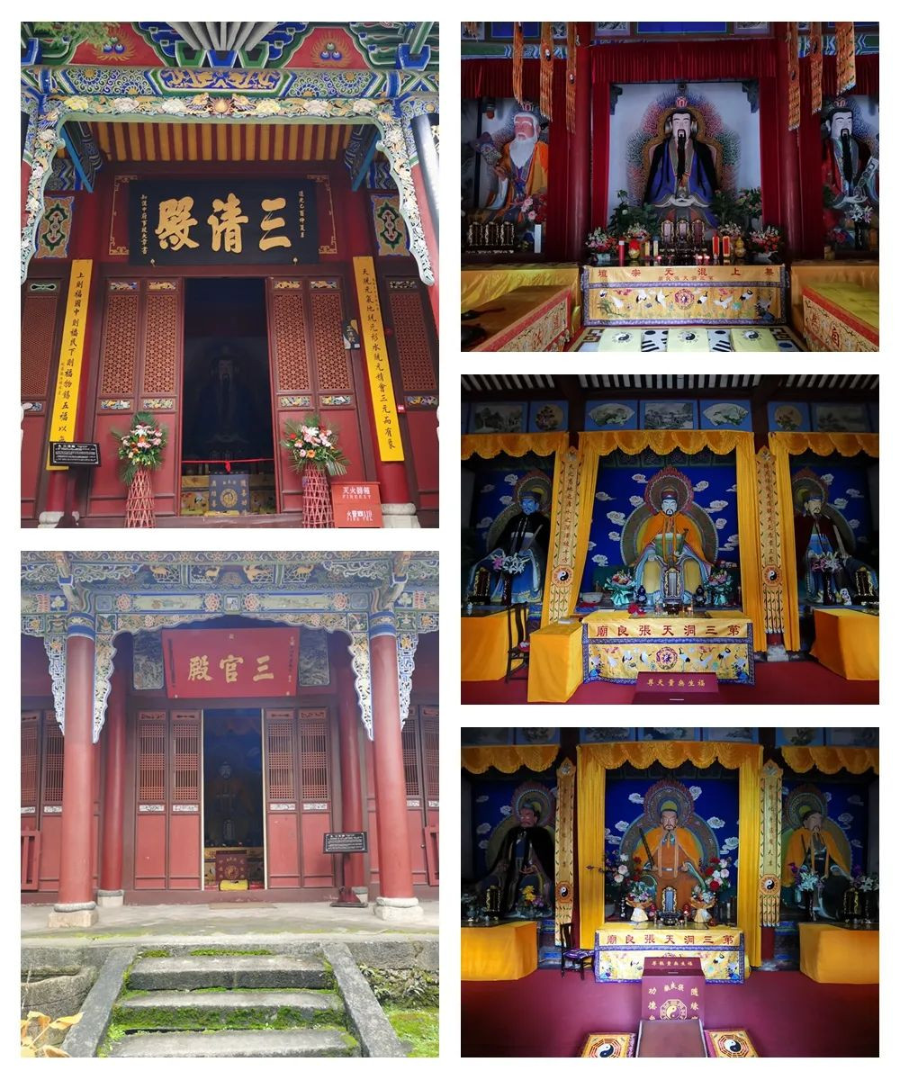 (庙中的三法殿、三官殿、三清殿等道教宫殿和奉祀神祗)