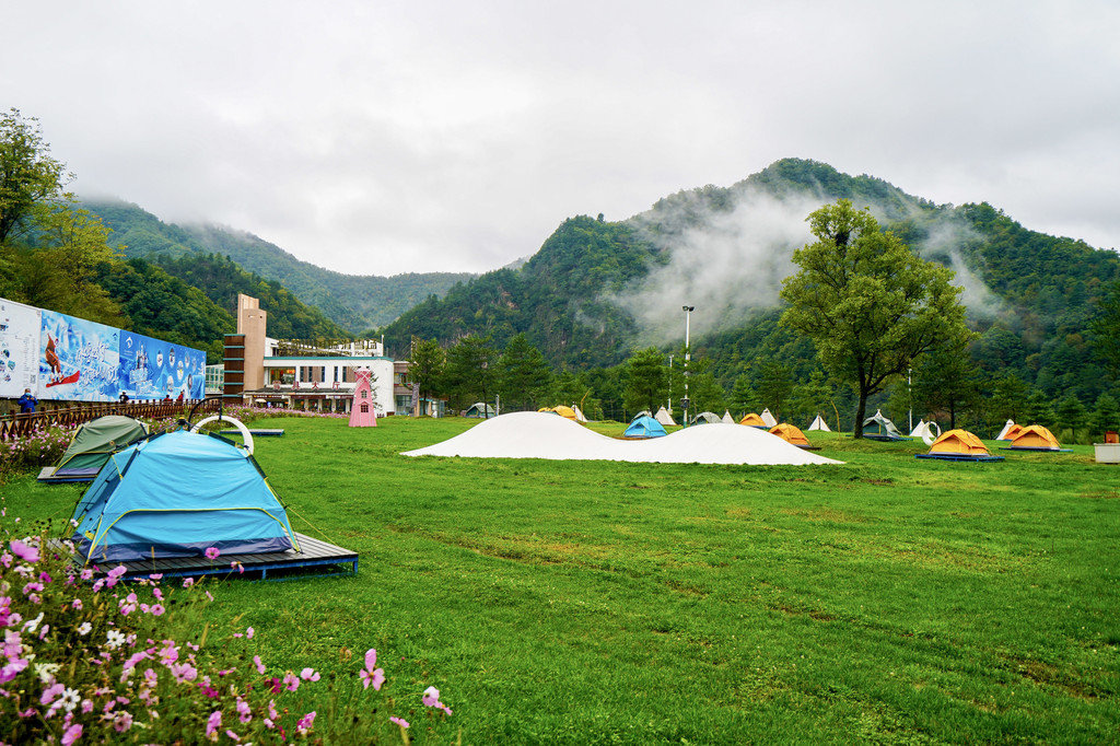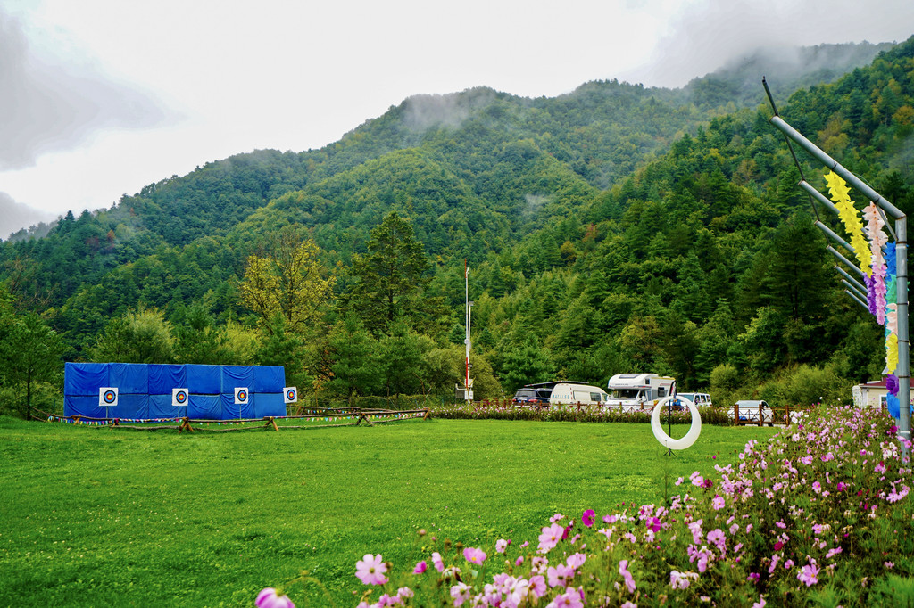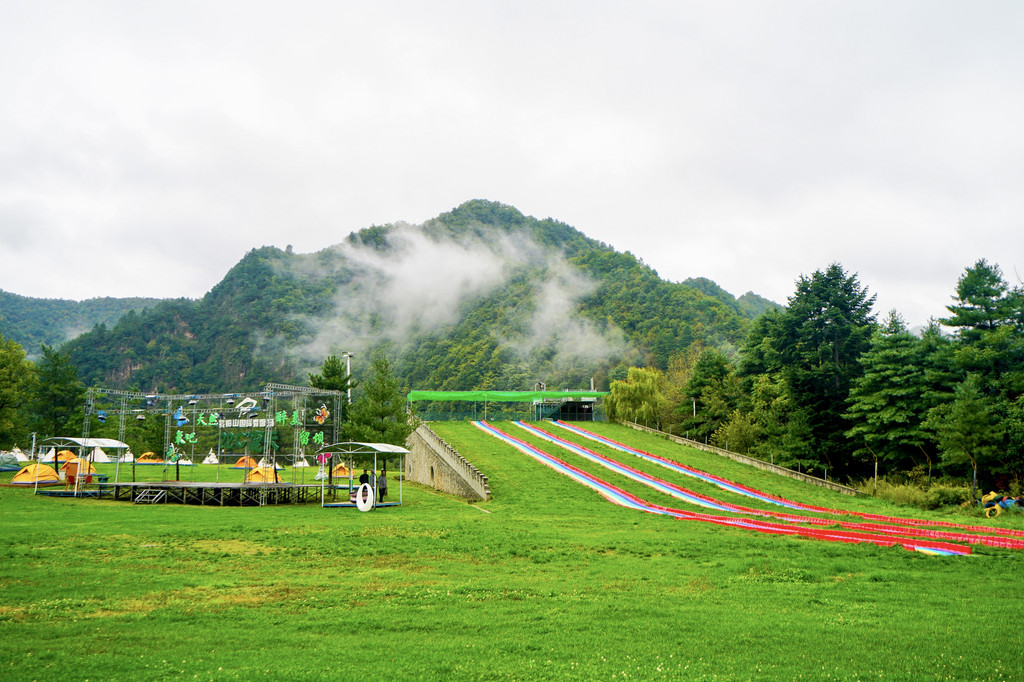 夏秋季节的紫柏山滑雪场也有很多好玩的项目,比如射箭,滑滑梯,当然大家还可以在这里户外露营,好像是住进了森林里,睁眼都是绿色,很是惬意。