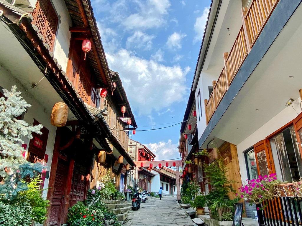 如果幸运,还可以看见牛羊在野餐,放牧人戴着草帽坐在石头上歇息,没有鞭子呦呵,一切和谐且自然。相传,这里还是诸葛亮三国时期六次进出祁山途中的屯兵养马之地。蓝天白云,篱笆土墙,静静啃草的牛羊……找一处干净的草地躺下去,场景惬意,心情愉悦。