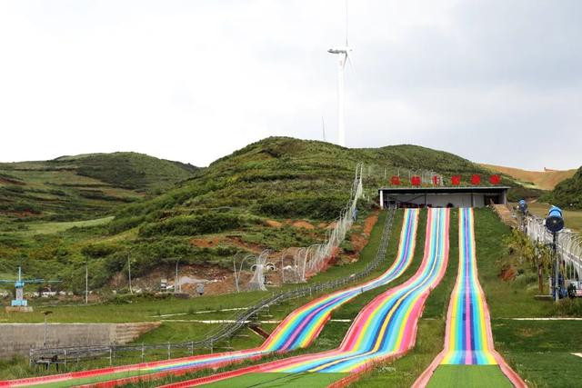 第二站,我们到了乌蒙滑雪场。冬天可以在这里滑雪,而夏天,这里可以花150元,租个帐篷露营。这里还有一些夏日娱乐项目,七彩滑道等。