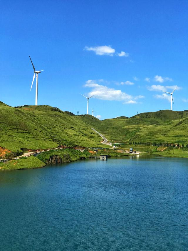 登山乌蒙大草原之巅,看大片的风车排兵列阵,与前来朝贺的云朵,共同装点着这壮阔高原。