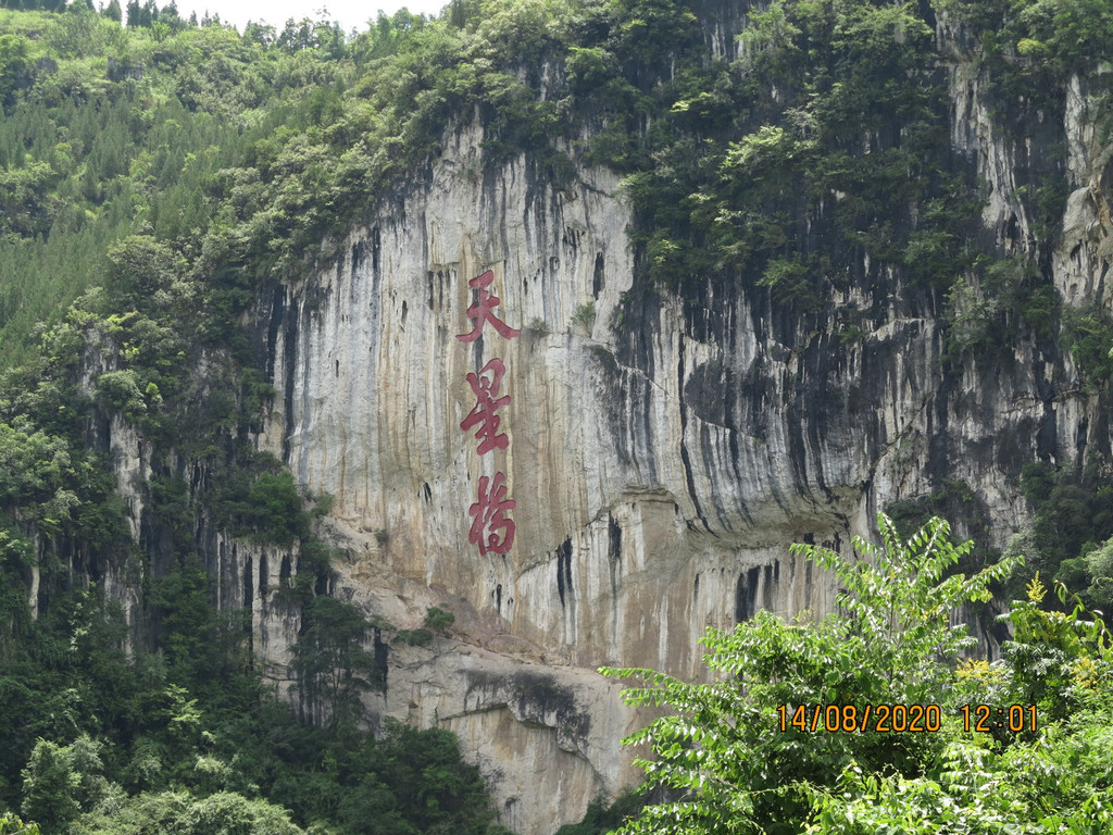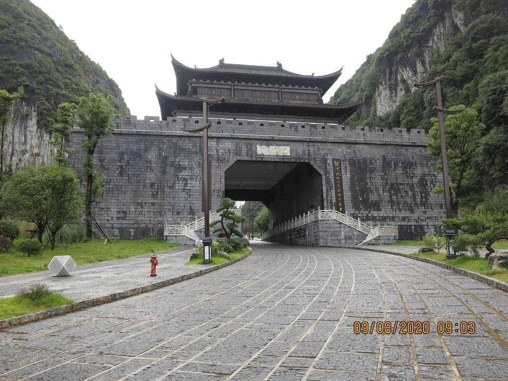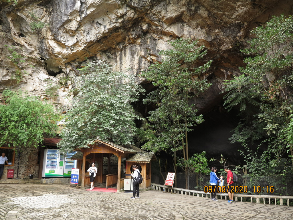 到了贵州的第二天,开始了景点行程,第一站织金洞,驱车离开平远古城,不多久到了织金洞景区,进入景区,沿着路走,快到洞口会看到不少摩崖,很快就到了洞口,洞口很低调,