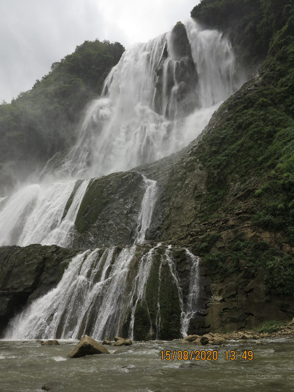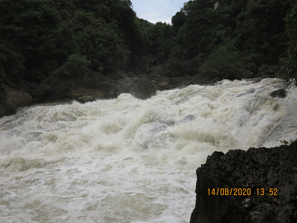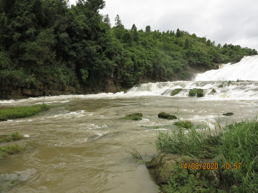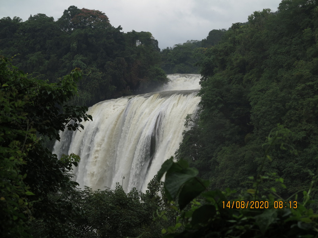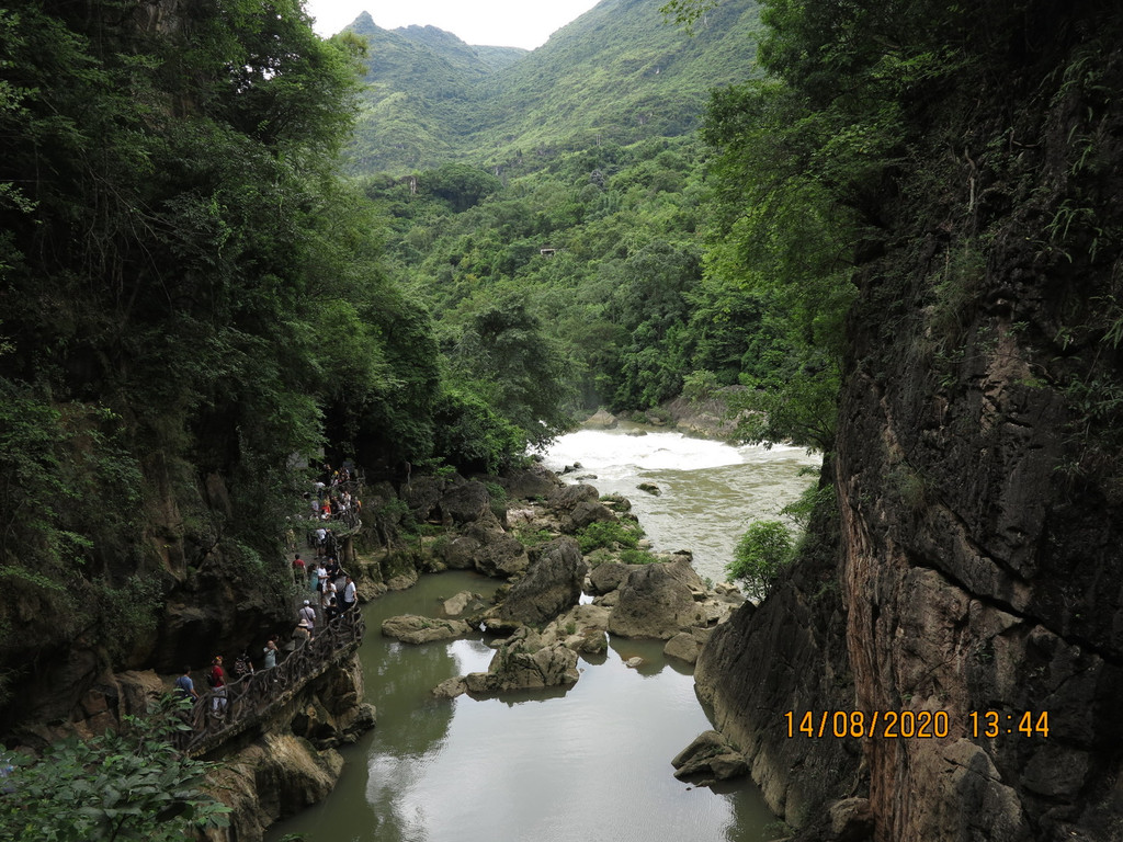 酒店早餐一般般,但餐厅下有个门直通黄果树景区,方便。十年前来过黄果树,冬季水小,这次水流巨大。一路步行来到观瀑台,非常震撼,由于塌方,瀑布后的水帘洞去不了。沿着步道上下左右多看看大瀑布,没有雨,但有彩虹,全身湿透。