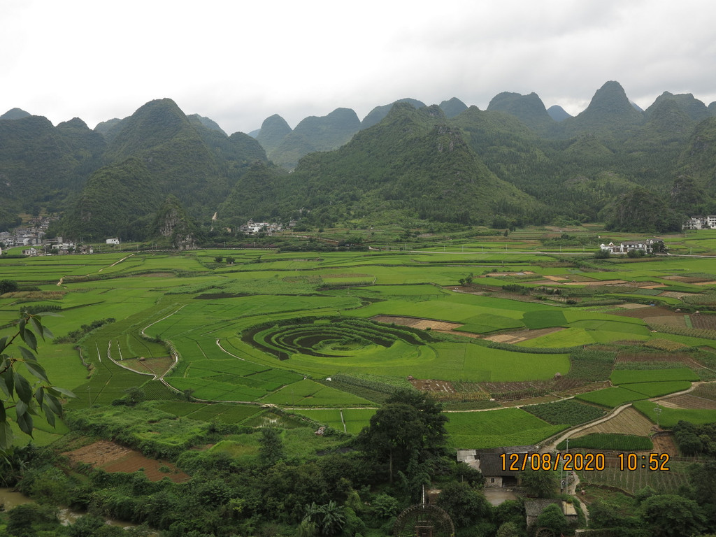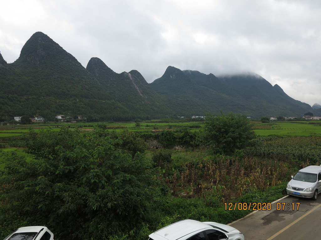 一早起床,阳台外就是万峰林,满眼绿色。这里村庄和农田交织,没有去年茂兰的原始。阳台上飞了一下无人机,这里限高120米,但风景美丽。
