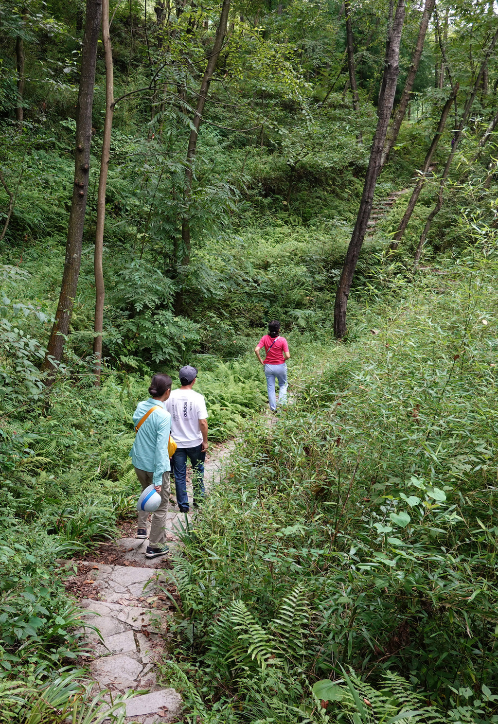 可是没走多远,小路就中断了。可是能看见远处有很好的台阶小路通向天生桥底方向,还能听到小溪的流水声。是不是要绕过小溪,才能走到那条小路上去呢?