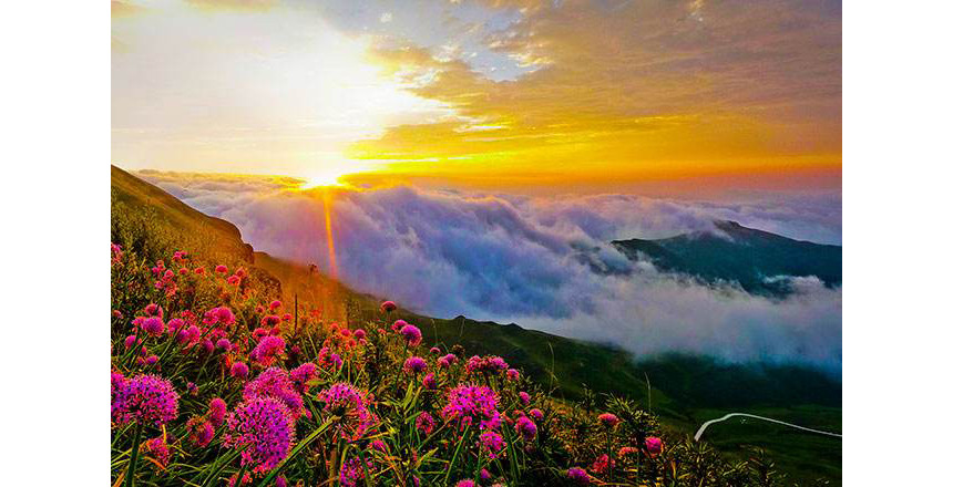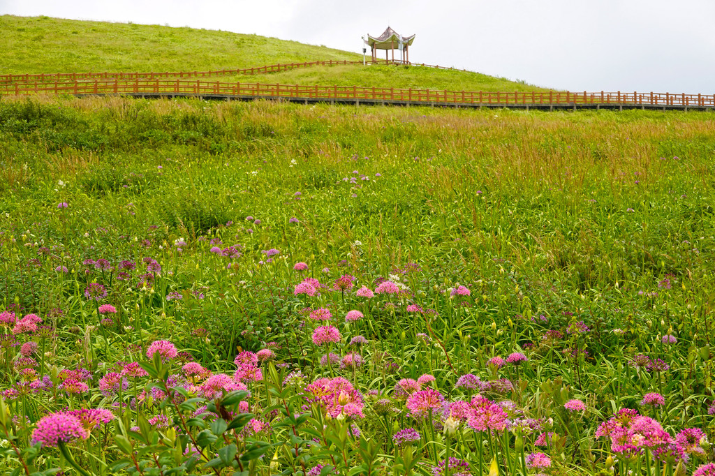 P1. 大韭菜坪景区(又名阿西里西韭菜坪)位于赫章县中营村,距县城26公里。主峰海拔2777米,为贵州西部第五高峰。山坡上长满韭菜,此韭菜不能食用,约60cm高,韭菜花为紫色。每年八、九月韭菜花盛开。