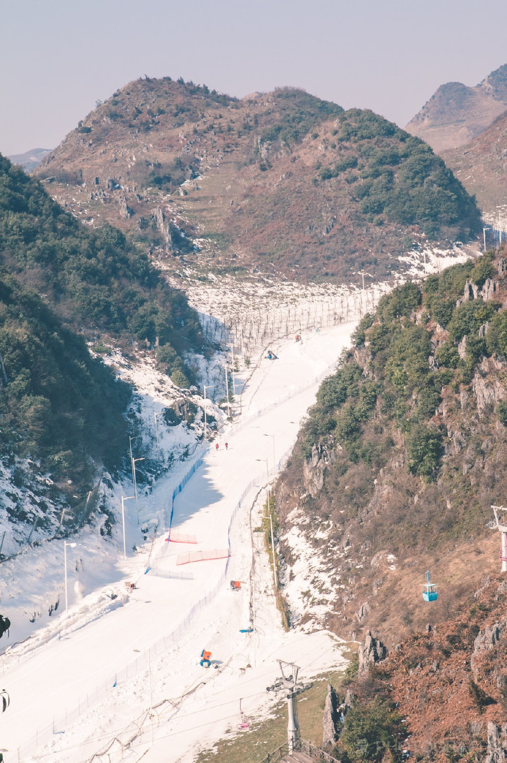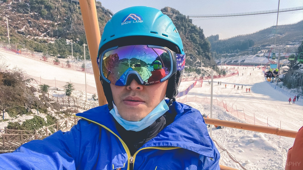 中级赛道,需要坐缆车去到起点,从高处滑下来,难度比初级赛道要难一些。在冬日的暖阳下,坐着缆车俯瞰景色,一片醉人的白雪和山景,在深深地呼吸着新鲜空气,身心舒畅!