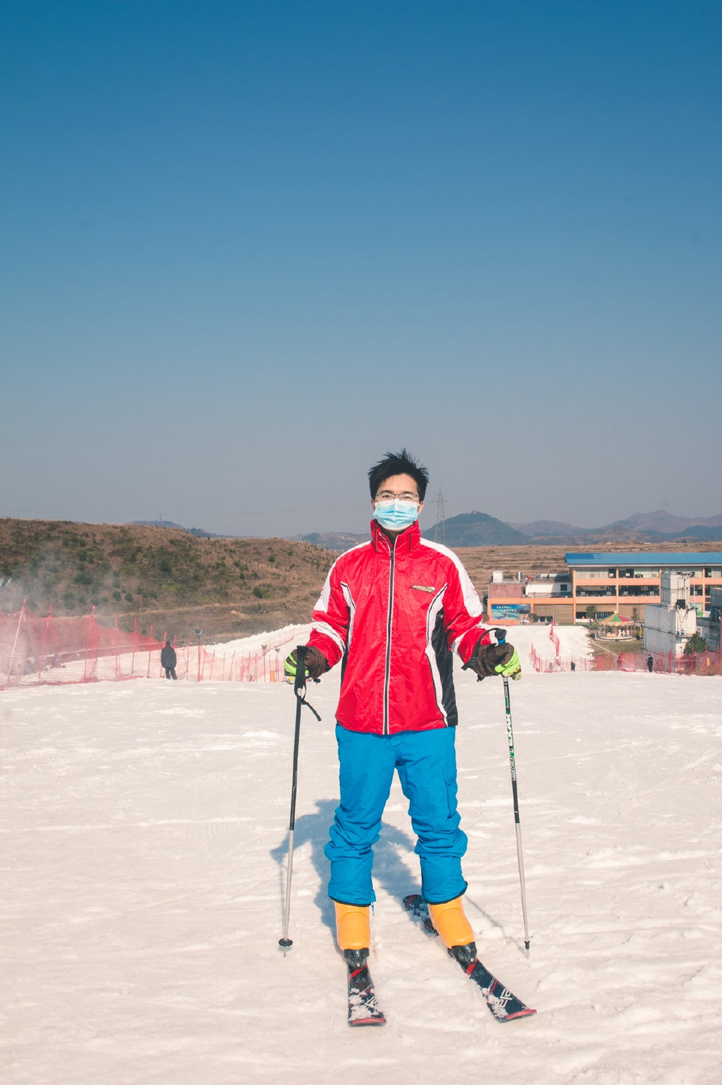 在玉舍国家森林公园滑雪场新学单板滑雪,嫌初级赛道太平缓了,刚学就敢去中级赛道找感觉,结果滚雪球很酸爽!滑雪还是要按部就班,从初级到中级再到高级,慢慢挑战自己!