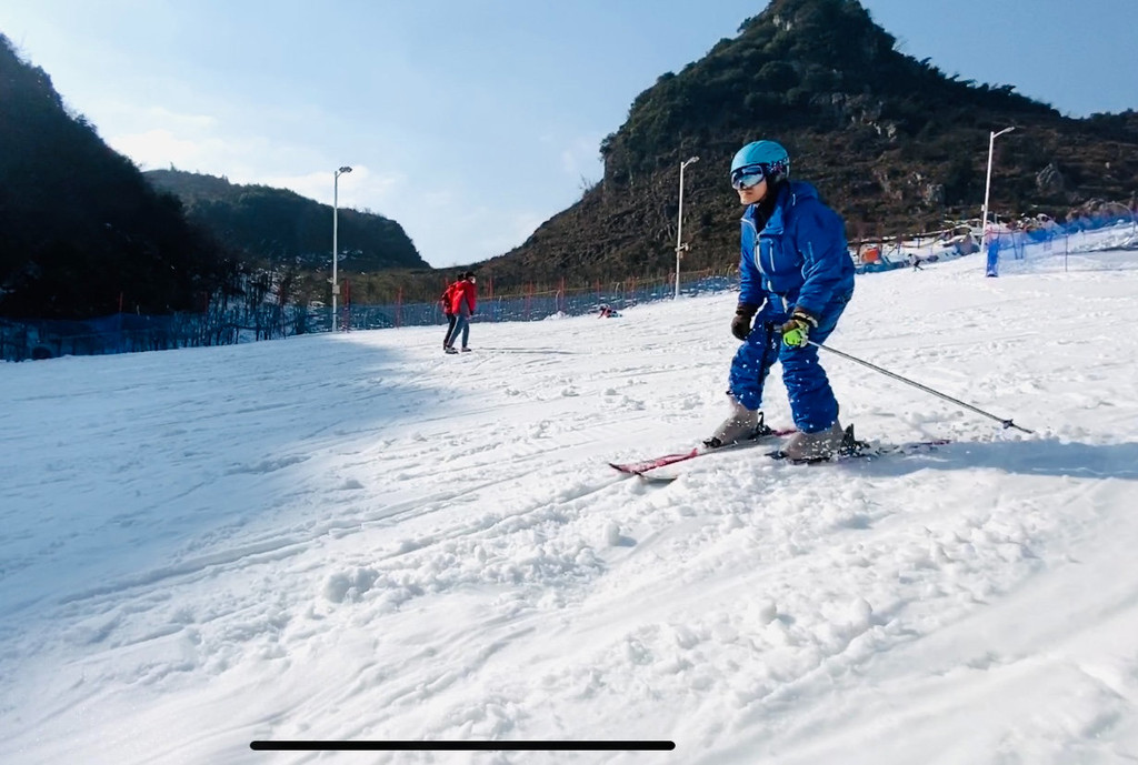 梅花山国际滑雪场,是位于在中国凉都·梅花山旅游景区里的,需要坐缆车登山,当我到达梅花山滑雪场的时候真的一下就被吸引住了,群山环绕、天蓝雪白,如一幅纯粹美好的雪景画卷。在这样的环境中享受滑雪的乐趣,就是一种冬日的向往!
