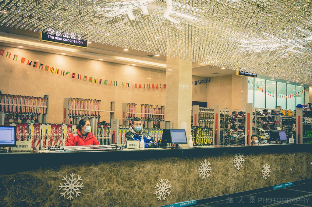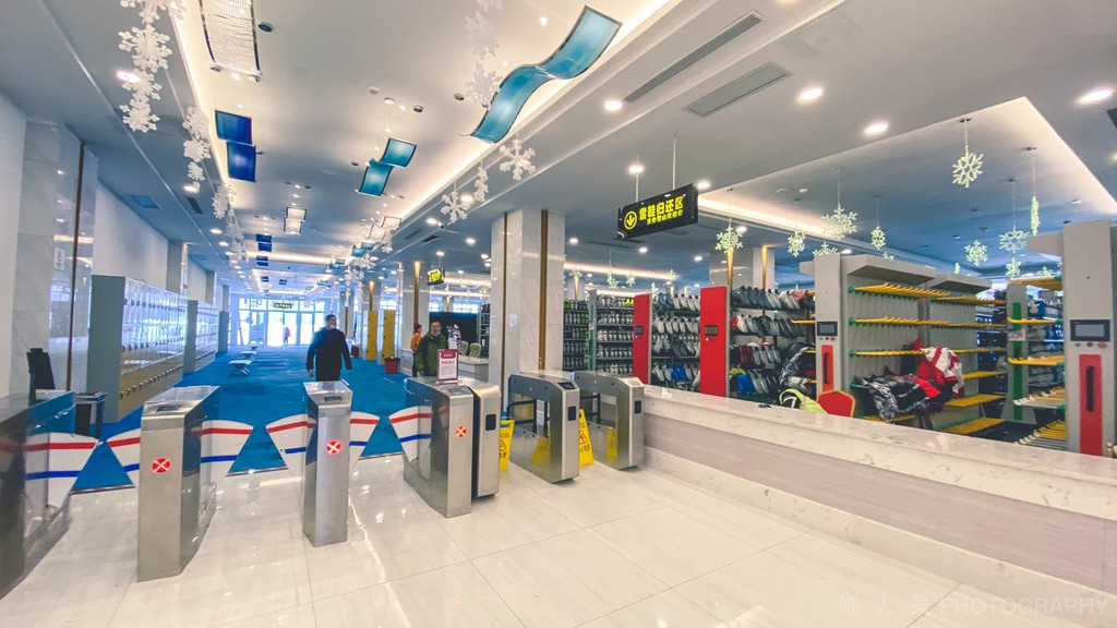 同样地,玉舍滑雪场也是可以提供非常全方位的服务,大堂设备区都非常干净整洁有序,同样可提供教练服务!