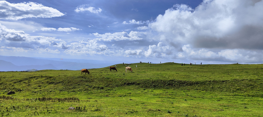 大家可能想象不到,在“地无三尺平”的贵州,居然有一处空中草原,上万亩的草地上,牛羊遍地,悠闲的吃着草,而游客却寥寥无几,景区空旷至极这就是贵州盘州市乌蒙山大草原。