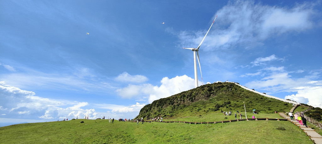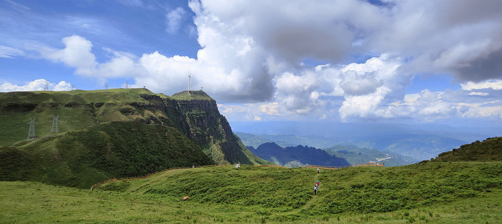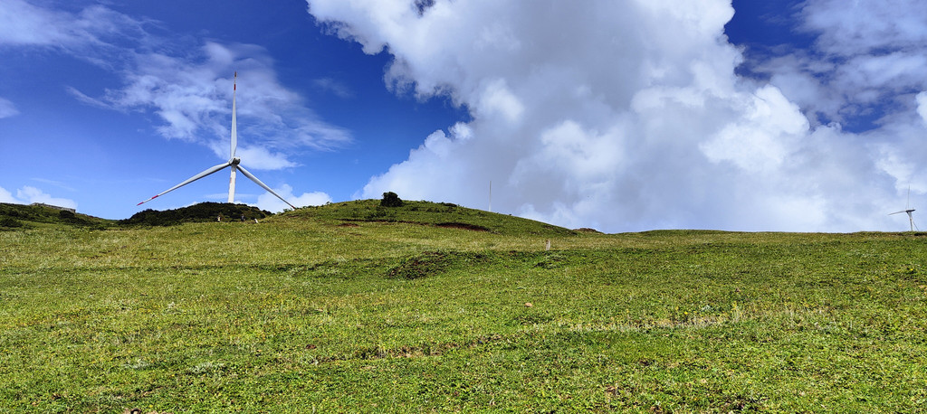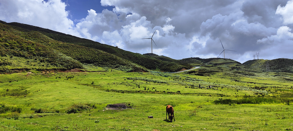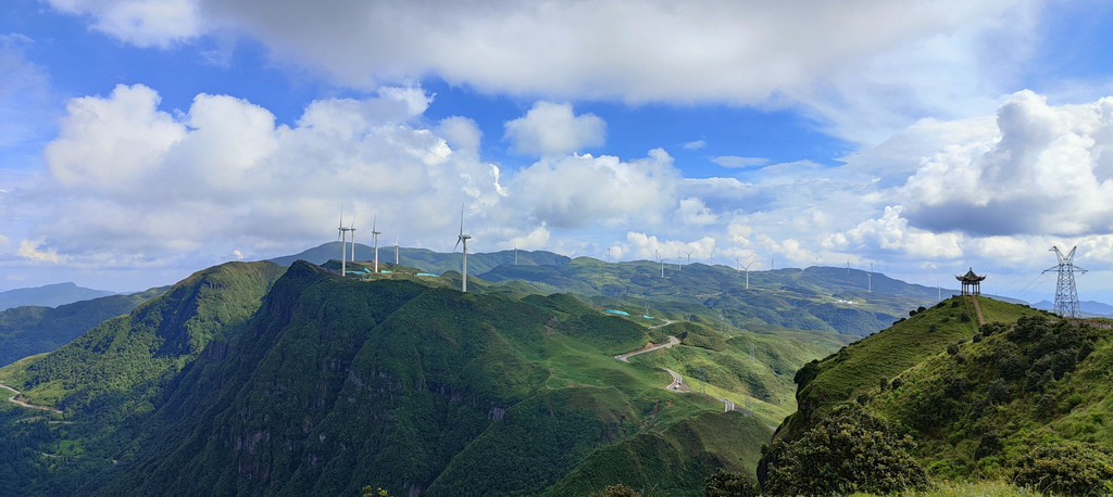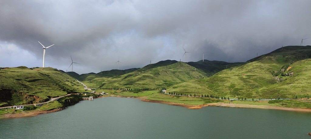 乌蒙大草原是贵州乃至西南地区海拔最高的草原,延绵起伏的草地、平缓低矮的山丘,在朗朗的阳光下,碧野万顷,牛羊出没,一望无垠,极为壮阔。一台台风电机组迎风而舞,似在欢迎远方宾客。傍晚的高山草原,风车飞转,霞光四射,金辉尽染。游客可俯瞰崇山峻岭,仰望旋转风车,体验高山草原的惬意。