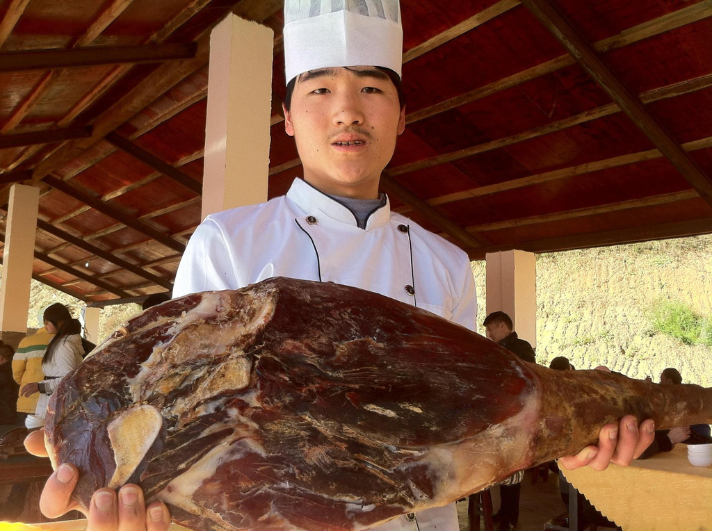 盘县火腿。也许你知道金华火腿、诺邓火腿,但如果你不知道盘县火腿,那你肯定不是一名合格的吃货。 特有的高原生态气候、高原山地地貌及土壤环境,为盘县火腿的制作提供了得天独厚的先天条件。盘县火腿不仅皮色金黄、肉色红润鲜艳,而且香味浓郁,吃起来油而不腻。色香味俱全,说得就是它了!