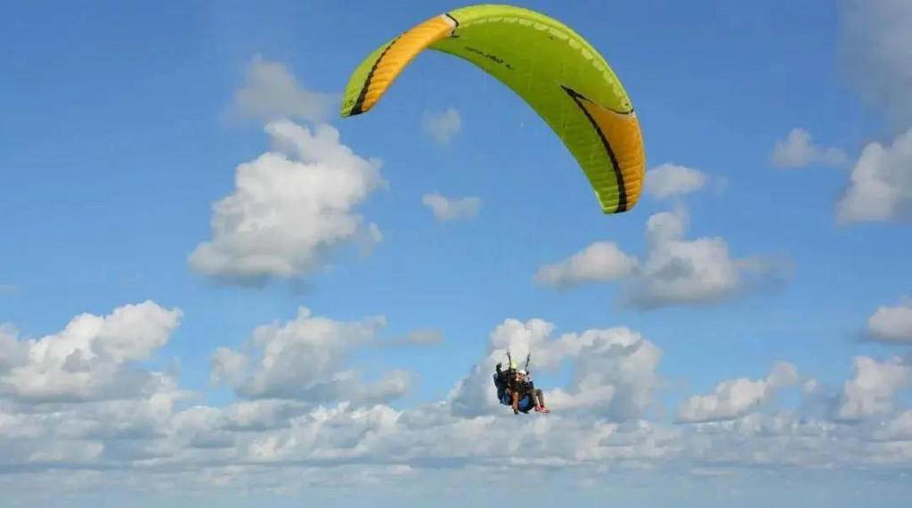 来跳伞,尽享春风,将春日的山野看个满怀。