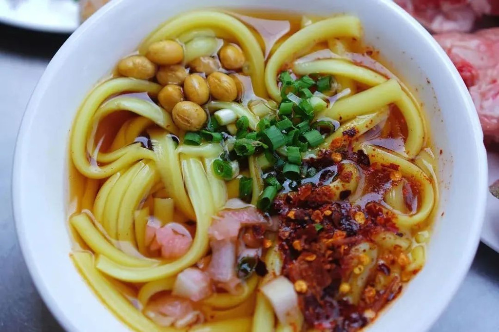 郎岱凉粉是六枝街头常见的特色美食,主料是米浆制作的凉粉,搭配黄豆、郎岱酱、岩脚醋等佐料,酸爽可口。