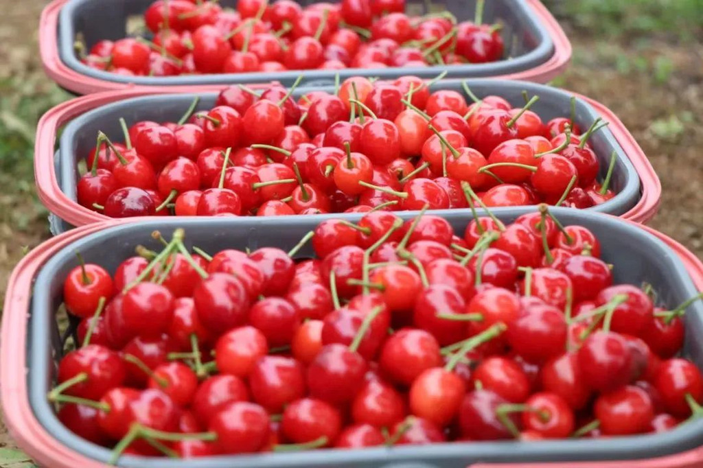 村民们背着竹筐,提着竹篮采摘樱桃,享受收获的喜悦。游客们漫步在樱桃园中,摆拍美照,品尝樱桃,一幅美丽的春日采摘画卷呈现在眼前。
